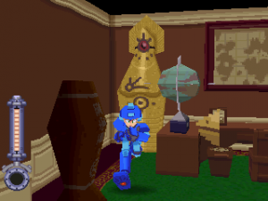 Aside from these, two Japanese songs were replaced. In the CD store, you could listen to the single “another sun” sung by Reika Morishita, the tune that was played during the Japanese commercial for Rockman DASH. This was changed to a generic pop instrumental composed by Makoto Tomozawa. Another song sung by Reika was played during the end credits in Japan, titled “Anata no Kaze ga Fuku Kara” (“For Your Wind Shall Blow”). In its place was a theme reprisal sprinkled with English dialogue from the main characters throughout the game. And finally, while it survived onto the English N64 port, the triumphant fist-pump after accidentally(?) walking in on Roll while she was changing was removed outside of Japan.