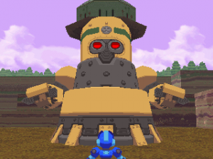 Aside from the first missions, the rest of the game isn’t too terribly difficult once you get the controls down. The only issues tend to eke out from frustration. Volnutt has a tendency to be knocked down and flung from large attacks before he acquires his optional helmet, and this isn’t accounting the knockback from a barrage of bullets that can keep him from retaliating. This makes for two very dangerous Reaverbots to contend with or try to avoid within the ruins. Sharukurusus are fast bipedal bots that charge towards Mega Man and drill him with their claws. Their attacks are strong enough to knock you off your feet even with a helmet and can pin you to a wall for repeated strikes. This is made even worse in the Lake Jyun sub-gate where the Sharukurusus have Predator-style cloaking and don’t reveal themselves until they’re right next to you lunging for a kill, letting their presence known beforehand only by the frightening approaching “CLANK CLANK CLANK” of their steps. Also within Lake Jyun’s ruins are the gator-like Firushudots that tempt you with huge Refractor bounties from their hides but belt out powerful ripple beams from their mouths like Gradius Moai. Their large numbers and wide attack range make them liable to stunlock you from a gang-up beam struggle. Fortunately, they only exist in one distinct water-wall room, so rushing past them isn’t a huge deal. As for the final boss, he hits hard with his telegraphed attacks, but can be a breeze if Mega Man comes to the fight well-armed with a power special weapon like the Shining Laser, making the final bout a quick beatdown. Beating the game does unlock higher difficulty modes, though an Easy Mode is only available if the player speeds through the game under three hours.