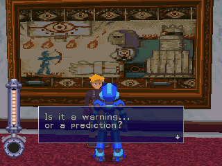 Audibly, Legends has the terrible distinction of having to come from a family of prodigies. Rather than follow the footsteps of the earlier titles, the first game chooses to focus on more atmospheric or cinematic trills for the soundtrack. While echoing noise makes for an unsettling dig run, it doesn’t lead to a hummable tune. Far more often, sections like the woodsy outdoors or out-of-the-way dungeons go for chirping birds or random metal tinks to break the silence. Luckily, the score livens up whenever there’s a boss fight or Volnutt is trotting through town. The series tends to crib public domain classical music, but it has its share of memorable new songs. “The Flutter Vs. The Gesellschaft” has become the unofficial theme song for Tron’s appearance, and the idyllic “Apple Market” track is one of the more popular melodies for all of Mega Man, even if it isn’t pulse-pounding or driving as, say Mega Man 2‘s “Dr Wily Stage 1”.