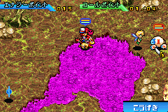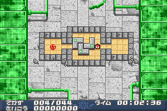 Remember Sokoban? That box-pushing puzzle game? Well, add characters from the GBA version of Devil Children and you've got Puzzle de Call! The Story mode begins when Jin and Akira are sucked into some bizarre alternate world, so Rand and Gale jump in to find them. Each level is made of several screens, each of which contains an egg. Hatching it will summon another demon that can be switched in and out of gameplay. However, the eggs disappear after a set number of turns, so getting to it is your highest priority. Beyond that, you just need to get to the pentagram that leads you to the next screen. At the end of each stage is a boss fight, where you need to collect all of the icons on the screen, all while dodging enemy attacks. It's an interesting idea, and one that noticeably spices up an otherwise standard game. Still, unless you really like box puzzles, there's nothing too drastically appealing about Puzzle de Call!