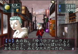 Like Devil Summoner, an Akuma Zensho disc was also released separately. Soul Hackers was also ported to the PlayStation, although it is mostly the same as the Saturn original, with a few additions. One of the major differences is a bonus demon called the P-Mecha, which you can raise with your PocketStation and take into battle. Near the end of the Saturn game, one of the secondary characters is killed. In the PlayStation version, it's possible to avoid their death, though only during a second playthrough. The Saturn version also has an extra dungeon, which was only accessible by mailing a flyer to Atlus, who would send back a bonus disc that would unlock it. It is regularly available in the PlayStation version. There is also a Digest Mode, which lets you replay key cutscenes after restarting the game, and there are a few extra story scenes as well. It also has a playable demo of Persona 2: Innocent Sin. At one point, Atlus considered Soul Hackers for English localization, although for whatever reasons, it never came to be.