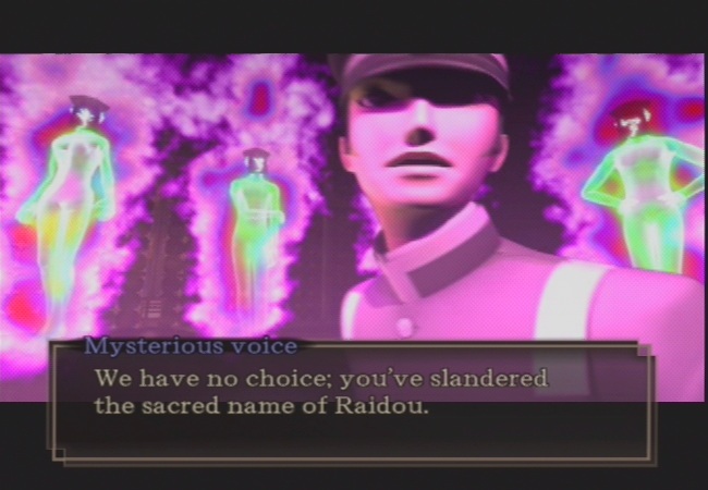 Kaneko likely thought the Raidou series needed some influence from the classic SMT titles, so the second title also added trademark elements such as multiple endings based on player alignment decisions and optional, ultra difficult battles with Fiends. Capturing monsters works entirely different from the first Raidou title, as you now enter into conversations, like the old days.