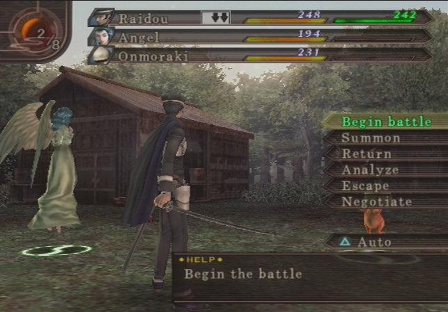 Making good on his promise to continue the adventures of Raidou Kuzunoha, Kazuma Kaneko returned to help spearhead the most recent PS2 Megami Tensei title. The fourth Devil Summoner game, dubbed the second in the US to minimize confusion, set out to fix a lot of complaints with the original. The battle system has been revamped to be quicker paced and more action-oriented, with a larger field of combat, and two demons at Raidou's command at once. The camera actually follows Raidou this time around, instead of sitting static, and the action is much easier to control. It also gets rid of random battles when running around non-dangerous areas, like the main town.