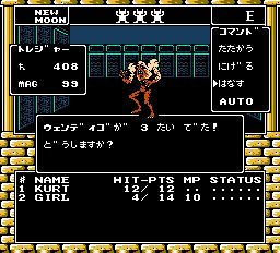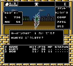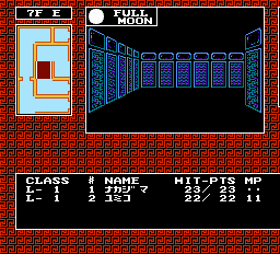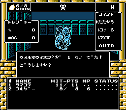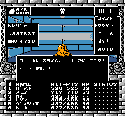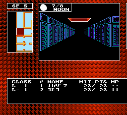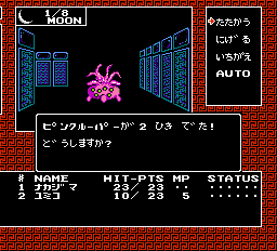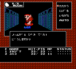The Famicom game sets down most of the gameplay standards seen in the rest of the series. It's surprising how in depth the monster catching and fusing elements are given the game's age. Like many RPGs of this era, Megami Tensei is pretty unforgiving, and you'll need to spend a lot of time leveling up or gathering monsters to get anywhere. Unlike other games of time, the battles do move quickly, especially with the handy auto battle feature, so the high monster encounter rate is almost balanced out. The plot is pretty thin, as the goal is really just to delve deeper and deeper into each dungeon. There's also a small automap, which is better than be said for games like Phantasy Star. You can't save your game, but you are given passwords in towns.
