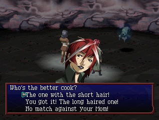 While human characters gain experience and levels like most RPGs, your demons are a bit different - the only way to make them stronger is to combine them with other demons. By entering a specific building dubbed a "Jakyou", you can take two (or three) of your pet demons and merge them to create a powerful monster. Intimate knowledge of practically every monster in the game is practically mandatory in Megami Tensei games, which is one of the main reasons why it can be intimidating to casual gamers One of the biggest elements introduced in Shin Megami Tensei was the freedom of choice between three completely different paths: Chaos is the idea of total anarchy and Darwinian "every man/demon for itself" philosophy, and is associated with Lucifer. Law is the complete opposite, offering a set of rules so that order that be maintained, associated with the likes of God. Neutral is somewhere in between, defying both sets of rules and stressing individuality. None of the paths are completely right or wrong: the Law alignment comes off as something of a dictatorship, and while Chaos represents freedom, it also allows for a hearty amount of pain and suffering. Finding where your allegiance lies - or casting off both and creating your own path - is a big part of the Megami Tensei philosophy, and these types of deep, personal choices are rarely seen in video games. The multiple paths also allow for plenty of replayability, as your choices alter the ending of the game.