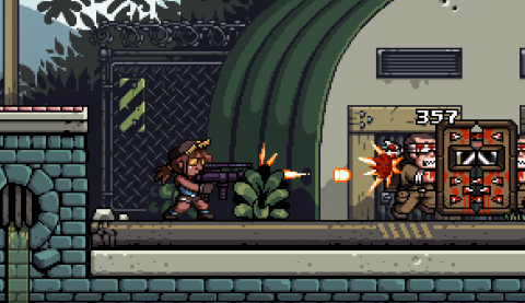 Tribute Games is one of several independent game companies looking to carve their notch in virtual history, and they seem off to a good start. Founded by Jonathan Lavigne, Jean-Francois Major, and Justin Cyr, these fellas worked at Ubisoft as developers on Scott Pilgrim vs. the World: The Game, considered by those who played it to be a great licensed title and a rare modern entry in the desert of beat-em-ups. After Wizorb, Tribute decided to make their next game far more of a banquet packed with oodles of potential content, establishing a Kickstarter for it in 2012 and thankfully reaching its goal. Yet despite not reaching most of their stretch goals, the team took the time to cram as many features into their product as possible and put in all the bonus goals anyway. The result is over one hundred missions, more than a dozen vicious bosses, and lots and lots and LOTS of guns. Thus, it would be named Mercenary Kings, and it would be impressive.