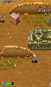 The biggest downfall is that multiplayer is gone entirely. Nope, not even a two-player mode. To make up for this, there’s an added “Original” mode with a brand new set of levels. Here, there are five commandos to control, each with wielding different weapons. you start with just one and then rescue them throughout the stages, then you can switch between them at any time by hitting the pause button. Taking a page from Capcom’s Forgotten Worlds, you can pick up medals and use them to buy various power-ups from tents strewn about the stages. Each commando acts as their own life, basically, and there are no continues. The graphics are the same as the arcade mode, though there’s a brand new soundtrack here. So basically, you’re getting two games in one. If it weren’t for the missing multiplayer, this would probably be even better than the arcade original.