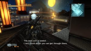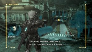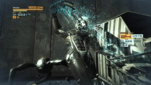 Metal Gear Rising doesn’t forget its origins, despite being an action-oriented spin off. VR Missions return, serving as tutorial and as extra challenges. Unlike in the main series, they are unlocked by finding them during the game, with a pack of harder ones available as paid DLC. Raiden can unlock costumes, with others being pre-order bonuses, that make him look like he did in MGS4 or don on Gray Fox’s cybernetic get-up as well. Pinging the codec can be used to save, just like in the main series, despite autosaving at checkpoints. There’s a Soliton radar on screen mapping enemy movements, and AR Vision point out where items and enemies are lurking. There are stealth sequences where Raiden can avoid fights if he’s as nimble as a ninja, and he can find barrels and cardboard boxes to sneak around in. In practice, it isn’t as reliable as in the main series. The enemies’ lines of sight are unclear and their patterns are random.