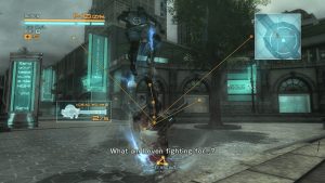 While its story & look reflects Kojima Productions’ sensibilities, MGR fits neatly into Platinum Games’ style of character action games. Raiden dances around with his blade, attacking and dodging enemies with all the dazzle of Bayonetta and the bravado of Dante, but it’s not all hack and slash to win. He is fast, able to employ his ninja skills to climb walls and block bullets. The blade mechanics that were apart of the original vision were integrated into the combat. Raiden can activate Blade mode and slice through enemies’ limbs or break off their armor. At the right moment, he can perform a Zandatsu strike, when an enemy is weakened or staggered, allowing him to grab their cybernetic cores to replenish his health and earn extra points. Later in the game, he unlocks Ripper Mode, only activated at full bars. In this mode, Raiden unleashes his full potential, cutting through enemies freely and without abandon for a short time.