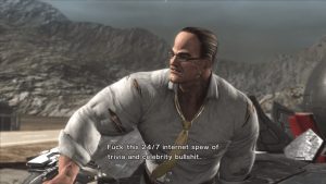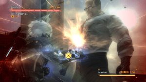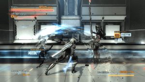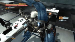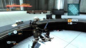 Of course, this being a PlatinumGames joint, combat is the main appeal, but MGR shares some of the problem their other games exhibit, like difficulty spikes and camera issues. Parrying is the name of the game, with Raiden able to deflect attacks all around him. Enemies telegraph their attacks, with a red flash meaning it can be parried & yellow meaning it’s impervious. Mastering it is key, and some punishing boss fights early on are meant to emphasize this. Raiden is more vulnerable than his character action peers. He’s easily made dizzy, and it takes a Mario Party level of analog stick waggling to get him out of that state. The camera is a handful to manage, especially in tight corridors and rooms. As with some other Platinum games, it will often lock on to an enemy far away. All of this makes for a frustrating game to play on the first time through. It’s a game that really opens up on successive playthroughs, with some upgrades bought and the muscle memory built up in your thumbs.