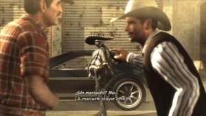 The music in Metal Gear Rising is perhaps the most memorable part. Since this isn’t a sneaking mission, the game trades its usual tense, symphonic sound for a fast and loud nu metal one. Jamie Christopherson serves as the main composer, and the soundtrack includes lyrical & musical contributions from metal and rock artists. Just a sample of the titles – “It Has To Be This Way”, “The War Still Rages Within”, and “The Only Thing I Know For Real” – broadcast what the OST is going for, vibing well with Raiden’s character development and the kinetic action of Platinum’s game design. It’s truly elevates the crazy boss fights, as everything’s exploding & characters fly through the air like gravity ain’t a thing, and then the lyrics kick in at just the right moment, like a climactic battle in a shonen anime. It’s just so campy & extra that it comes back around to being endearing.