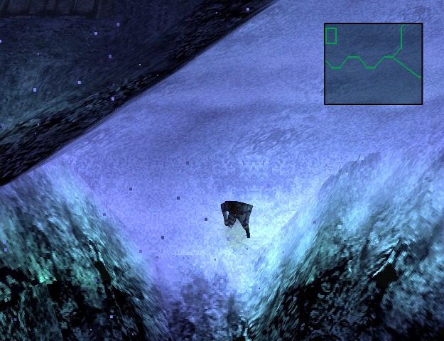 ポリゴン数が苦しかった覚えが。一見、そんなに食ってないように見えるでしょう。全く気付かないでスルスル降りてっちゃう人が大半でしょうが、向かいの棟とか上を見上だけ時目に入る落ちたアンテナの残骸とかもくって作ってあります。見てね。(ステージCG 佐藤久美)