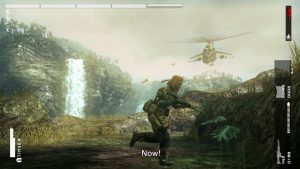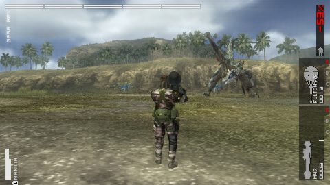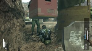 The fun quirks that Metal Gear is know for are still present in Peace Walker. One of the missions involves listening for a bird call in order to find a key card. Hideo Kojima can be recruited for Mother Base. The Fulton recovery system, while based on a real life military system, is given a goofy spin. Despite how often it’s done, the mechanic never fails to be amusing, with soldiers hoisted into the sky with a yelp. Cross promotion returns as well. Snake listens to mission briefings and music using a period appropriate Sony Walkman. Monster Hunter wasn’t only an inspiration for the game; optional boss fights with select monsters from the game are hidden on a secret island, including a monster specially designed for Peace Walker, Gear Rex. In a second crossover with Ubisoft’s series, the Assassin’s Straw Box, an unlockable hay bale that acts like a cardboard box, allows Snake to grab enemies and incapacitate them. The Japanese PSP version got even more cross promotion in the form of branded items. Soldiers can be distracted by Famitsu, instead of a generic magazine. Snake can eat Doritos and toss back a Mountain Dew, while restoring his Psyche with an AXE Body Spray.