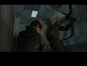 The biggest change to the game, the revised cut scenes, are probably the most memorable and controversial part of Twin Snakes. Ryuhei Kitamura is known for stylish action movies. His feature length debut, Versus, was a bombastic, bloody film, set in a forest that can resurrect the dead, involving zombies, yakuza, and swordplay. So the director re-envisioned the events of the game in some wild ways. Characters shows a disdain for physics, constantly flipping and jumping around for seemingly no reason, and bullet time is liberally applied. It is all very over-the-top, even for a Metal Gear game. On PS1, Snake is a larger-than-life badass who can take on a helicopter in a blizzard, but here, he’s characterized as a martial arts fiend able to hop off of missiles while firing a rocket. Funnily enough, Kitamura initially tried to hew close to the original direction, only to have Kojima ask for something that reflected the action director’s own sensibilities instead.