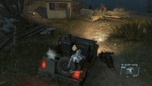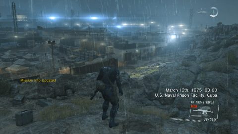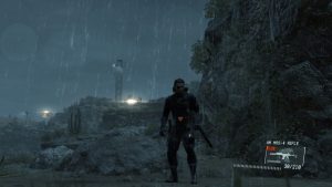 Ground Zeroes builds upon the mechanics and control of Peace Walker but introduces its own new twist in the form of new design. Camp Omega is small but dense sandbox. Big Boss has free reign to fulfill the mission in whatever manner he sees fit, with his only objective being evacuating the two prisoners. Going in guns blazing is an option, and gun play feels good. Among Snake’s tools is a bullet time-like feature called “Reflex Action.” Whenever Snake is spotted by an enemy, time slows down for a moment, and Snake is able to avoid alert with a well time head shot. It is a cool looking effect, that does make the game much easier, but like Auto Aim in Peace Walker, it can easily be turned off. While it is more action based, sneaking is more than encouraged. Snake can crouch walk, in addition to crawling and standing, damping the sound of his steps, and the rainy setting of the mission also helps cover footsteps. One of the more useful things is Snake’s binoculars. It can mark enemies so that their movements can be tracked in the HUD. Poking around Camp Omega can lead to some interesting finds, and other items can be unlocked through better rankings on successive playthroughs.
