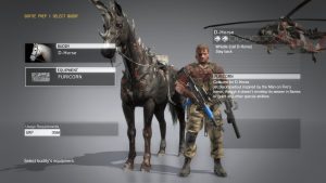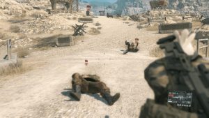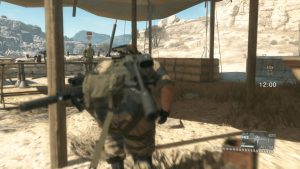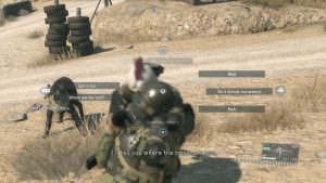 The game plays as fabulously as Ground Zeroes, carrying over the same mechanics, but with the expanded open world of its two settings. More weapons are found in the field or built back at Mother Base. Fulton recovery makes a comeback here, with an expanded use. Not only can players nab humans out of the field, but also resources, animals, and others. Different support characters can accompany Snake on missions, offering unique advantages. D-Dog is a good doggo rescued by Snake in the field. He can take out enemies with a knife in his mouth. D-Horse allows Snake to get around the different maps at a gallop. Quiet offers her expert sniper skills. A robot, D-Walker, looking like a bigger sized Metal Gear Mk. II, gives Snake some extra mobility and defense options. Each story mission begins and ends with credits of those who worked on the scenario, lending them a TV-like feel.