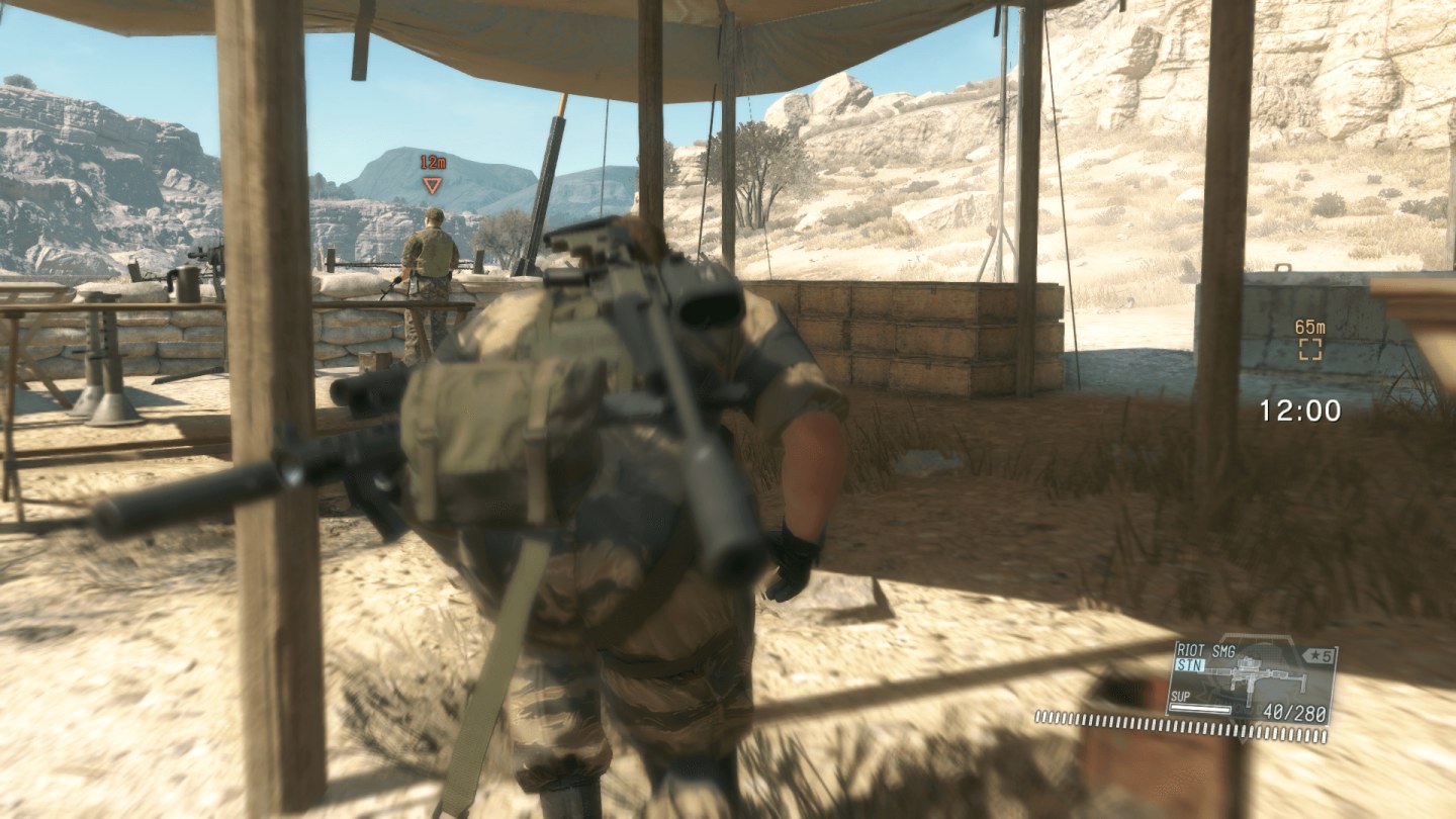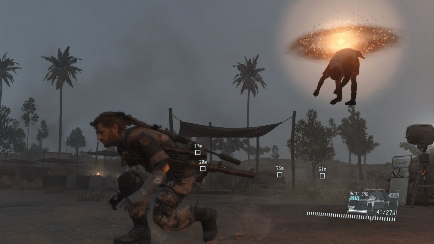 It wouldn’t be a Metal Gear game without some silliness. Snake can get so dirty that he’ll attract flies and upon returning to base, soldiers douse him with water. The Fulton system can be upgraded to a wormhole, because why not? There are more unlockable skins, such as turning your horse into a ridiculous demon horse or making Snake look 32-bit as Gray Fox. Using the iDroid interface, players can collect and play different licensed tracks – or their own music on PC – so you can start missions blasting Wagner’s ‘Flight of the Valkyries’ from a helicopter, for that ‘Apocalypse Now’ energy. R&D can develop a rocket arm that players can guide right into the faces of their enemies. There’s a mission to extract Hideo Kojima from yet another dangerous situation. Play poorly enough and the game will offer a chicken hat, which makes you harder to see, gives you extra chances when you get caught, and docks your score, or a little chick hat, which makes you invisible and set your score to 0.