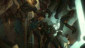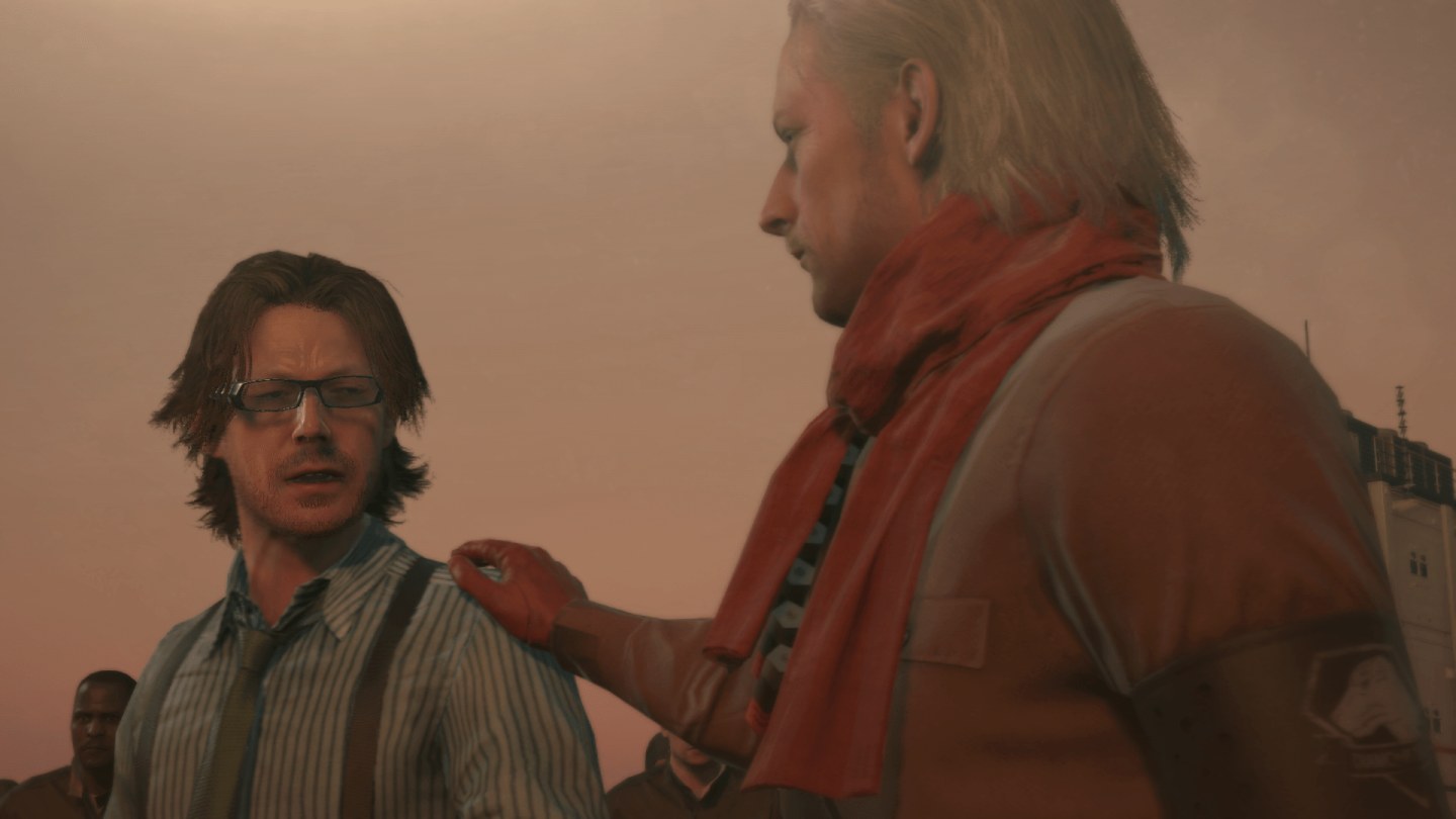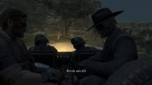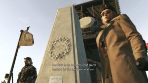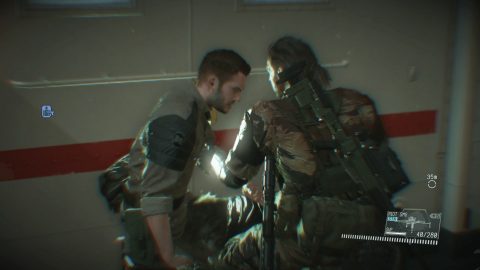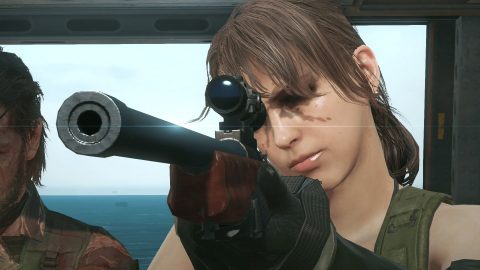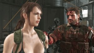 A lot of emphasis in pre-release marketing was placed on Quiet, played by Stefanie Joosten, with Kojima himself tweeting on record that the reason she’s basically naked would make people feel “ashamed for (their) words and deeds.” But like in Metal Gear Solid 4, the game’s words & deeds emphasize her body. When captured, she is put into a cell, where she takes showers as the camera lingers at fetish angles. After cleared for active duty, she lounges around in provocative poses on the helicopter between missions. This is to the game’s detriment, because she is a more interesting character than any of the Beauty & Beast Squad. Her boss fight is a simpler, tighter focused riff on the sniper dual in Metal Gear Solid 3, and she’s the most useful companion to take on missions. She had potential but as the series has proved multiple times with its female characters, that potential gets buried under the sexism.