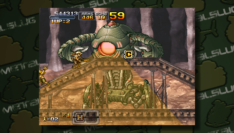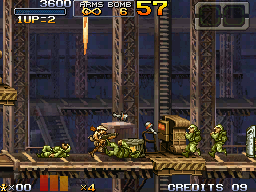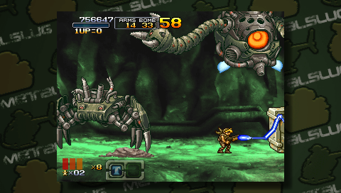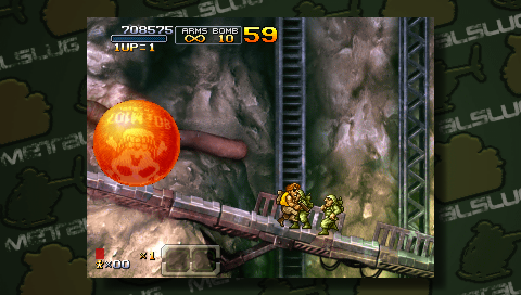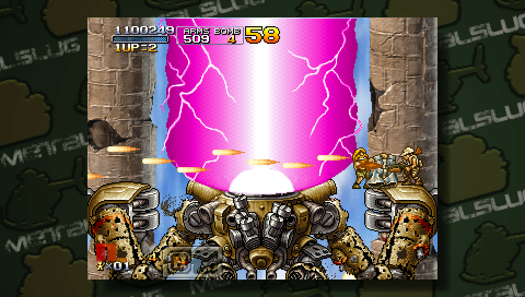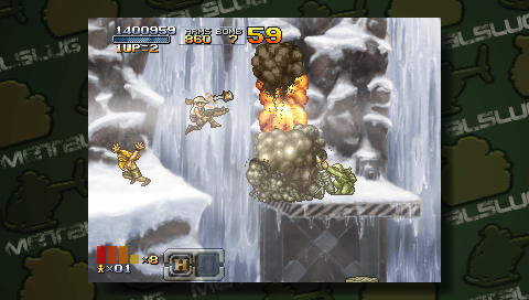 The game was re-released in 2009 under the name Metal Slug XX, published first on the PSP and then on the Xbox 360 Live Arcade. The title seems to suggest, like with Metal Slug X and Metal Slug 2, this improved version was supposed to be the version the developers initially wanted to release. Indeed, the PSP and Xbox 360 actually has the screen space to display Metal Slug as it should be (though it was still designed for a typical arcade 4:3 aspect ratio rather than a widescreen display). The sound quality is much better than the DS, and it actually supports two player mode too.