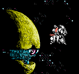 While pretty easy to pick up and play, Metal Storm certainly takes some effort to actually beat. Considering this title was developed by the borderline masochistic Irem, no quarter should be expected from the developers. However, as far as other Irem titles are concerned, this one is actually pretty darn forgiving with unlimited continues, a password system, and not deluging you with enemies as R-Type would be wont to do. At the same time, it’s not a pushover and can get to be quite vexing in the later stages, particularly due to the M-308’s fragility against any sort of enemy contact. Seven levels in all must be beaten, none of which are too long but can certainly take some time to learn how to avoid certain enemies and environmental hazards. Your control of gravity becomes increasingly vital as jumps become trickier and resistance increases for each new level.