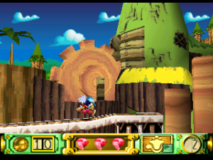 These two paragraphs promise a science-fiction actionfest, and Metal Storm‘s primary tenet of design is future technology. Your protagonist, the M-308 bipedal gunner robot, fights against the many different mechs guarding the core of the Cyberg station. Every single thing is mechanical with nary an organism in sight, with Cyberg itself essentially one massive Star Wars-infringing steel death globe, albeit one with a vast colorful interior. The graphics are well-detailed and incredibly bright, with smoothly-animated characters and backgrounds which utilize interesting scrolling effects when contrasted against the foreground. The only oddity is the orange-and-raspberry palette of your M-308 when the few pieces of official artwork portray its chassis as white, but the visual style is otherwise consistent and appealing. The music also fits in quite well, even if nothing’s particularly catchy. The first level tune is surprisingly upbeat for a semi-serious atmosphere, but later tunes cast a more dramatic mood the farther in you travel.
