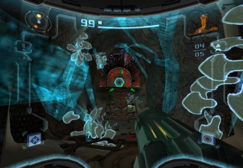 While the Dark world elements are Metroid Prime 2‘s biggest strengths, they’re also one of its biggest weaknesses. The original Metroid Prime was so effective because it was such a gorgeous game, presenting an alien world that was dangerous but fascinating. In contrast, Metroid Prime 2 is just unrelenting brutality. The hub area of the Temple Grounds show off some cool designs, but the Agon Wastes consist of little more than sand and rocks, while the Torvus Bog is one gigantic green swamp. Toss in the purple shades of the Dark Aether, and so much of the game just looks and feels gloomy. At least this is somewhat rectified by the Sanctuary Fortress, a citadel filled with high technology and a bright silver, retro sci-fi aesthetic. It also contains one of the coolest enemies in the game, a virus that infects Samus’ suit and can only be defeated by rebooting, executed via a button function.