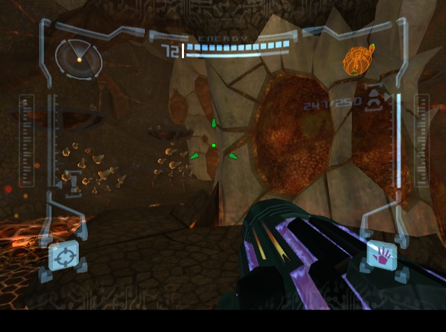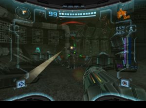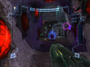 The Ing are particularly terrifying foes, too. They’re not just shadowy monsters, they also possess the bodies of their victims, using them as zombie-like puppets that you must dispose of. Between these eldritch menaces and an environment that’s literally trying its best to kill you, there’s a tremendous sense of terror and menace prevalent in Metroid Prime 2. It’s not quite a horror game – it isn’t particularly gruesome, and it’s not much on jump scares either – but there’s a sense of oppressiveness that pervades the whole experience. Plus, the Game Over sequence is absolutely brutal. The version in the first game, which zoomed in on Samus’ cracked visor, was already a little unnerving, but this game shows an x-ray highlighting the failure of Samus’ heart as beeping indicates the flatlining of her vitals, before the text reads “Mission Failure”. It’s terrifying, so make sure not to die!
