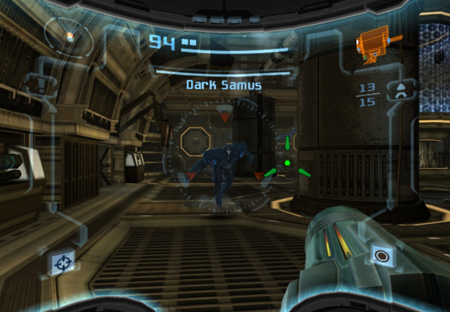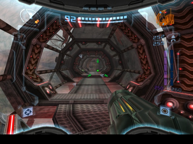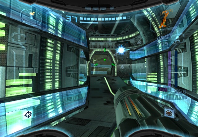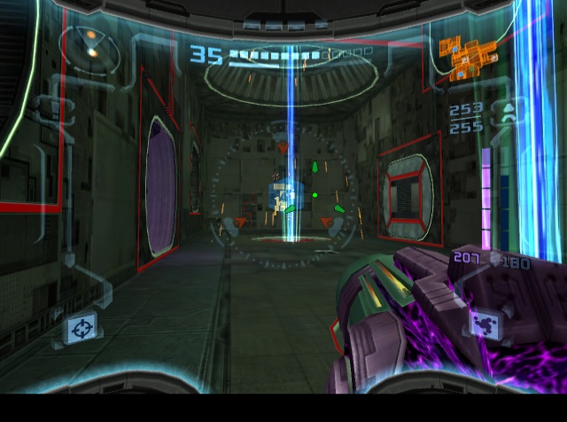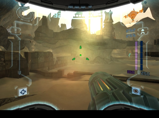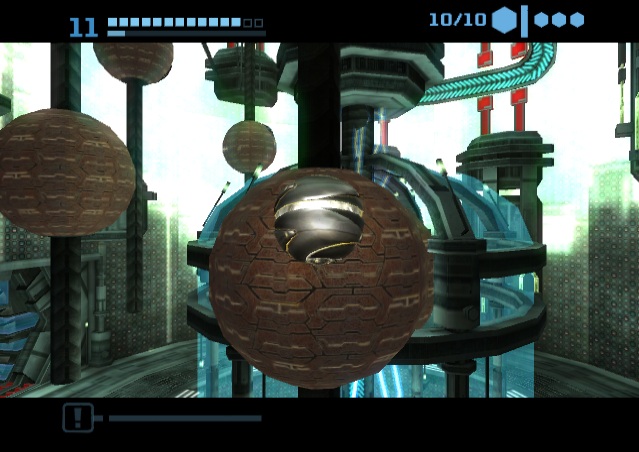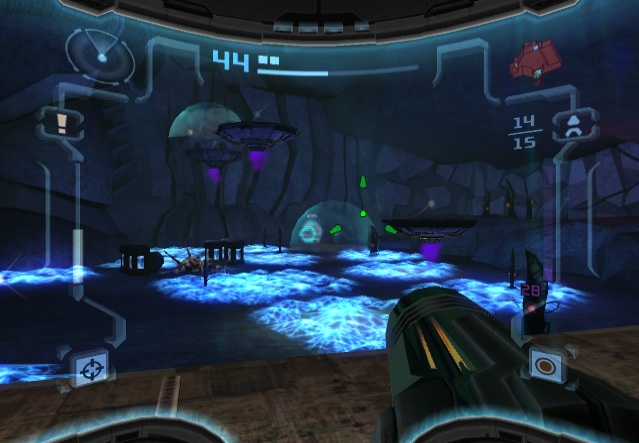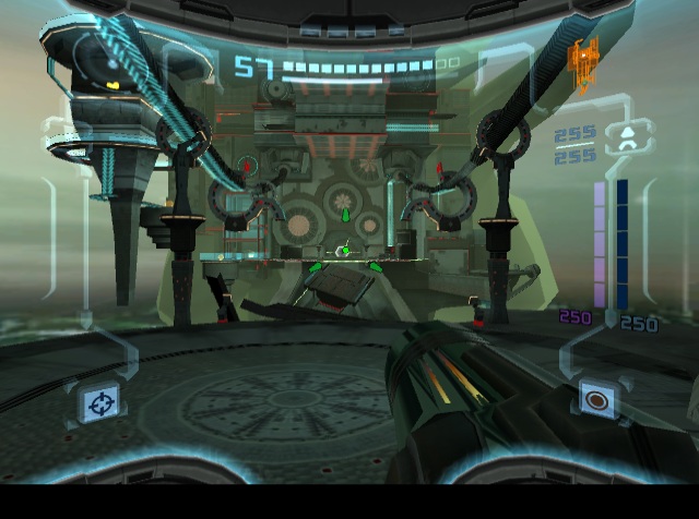 When the original Metroid Prime was released, one of the only major criticisms was the lack of a multiplayer mode. Metroid was never previously a multiplayer game, but it’s been the general assumption that first-person shooters should have them, and so one was added to Metroid Prime 2. Taking control of one of four colored Samus Arans, there are two modes: a normal Deathmatch, and Bounty, where the object is to collect as many coins as possible, either by destroying crates or knocking them out of other players. There are six arenas in total plus a number of music themes, which can be expanded by playing the single-player game. In addition to obtainable weapons, there are also machines which provide a randomized benefit, like invisibility or super strength. Despite the effort, this mode isn’t really much fun, as the controls just weren’t made for competitive multiplayer, especially in the GameCube version. Neither the GameCube or Wii versions had online multiplayer, either.