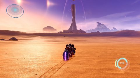 Once you get access to Vi-O-La, it seems like you can explore the desert however you wish. But in reality you can’t, and there’s still a set order to beat the areas. In most cases, you’ll also need to backtrack to a previously completed area to find some piece of equipment, bring it back to base, and then equip it before moving on to a new section. You can drive anywhere around Sol Valley, but there’s really not much to see or do. Compared to other open world games, it’s not particularly large, since you can cross from one side to the other in just a few minutes, but most of it is just empty sand and rocks. There are a few shrines to find, at least, where you can find some item upgrades and other goodies, providing you have the right equipment.