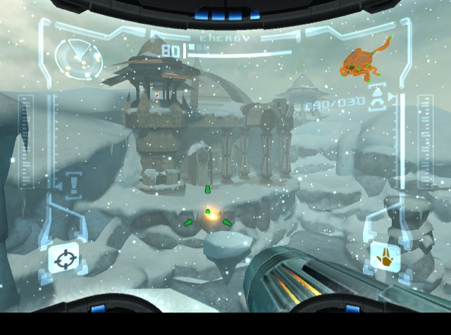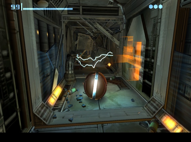 Other first-person shooters like Halo and Doom never really leave the perspective of the characters, so weirdly, you never actually get to see protagonists like Doomguy or Gordon Freeman unless you’re looking into a mirror. In contrast, Metroid Prime regularly takes the camera outside of Samus’ view to give a cinematic look at the action, typically in the form of cutscenes than pan around and introduce new areas. The camera also changes to a third-person perspective when using the Morph Ball, giving you a wider view of the terrain as you roll around.