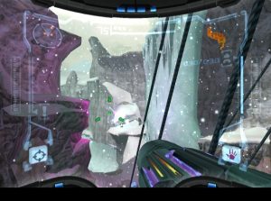 Tallon IV is divided up into several areas with different biomes. You begin on the rainy Overworld, an area similar to Crateria and Brinstar, which is overrun by plant life and other vegetation. Early on you also explore the Chozo Ruins, the remains of the ancient civilization that created Samus’ Power Suit, and mostly sits in an area filled with sand and rocks. Magmoor Caverns is an underground series of tunnels filled with lava and is basically this game’s equivalent to Norfair, while the Phendrana Drifts present an arctic climate buried in snow and ice, as well as being the home of a Space Pirate research facility. Like Super Metroid, there’s also a ship wreckage to explore, except this one is the Frigate Orpheon, the same vessel you explored in the game’s prologue, which is now partially submerged in water. There are the Phazon Mines as well, a mountainous area where the Space Pirates set up operations to collect the energy source called Phazon, which is a recurring theme throughout the Prime subseries.