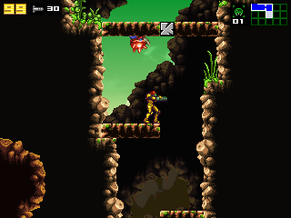 With this comes some tweaks to the controls. Samus is only controlled by the analog pad, which feels a little weird for a 2D game but feels fluid enough once you get used to it. The main reason for this is that you can lock your position and aim in 360 degrees, allowing for much more accurate shooting. The combat is also made more interesting through the use of a new melee deflect attack. Many of the early enemies either have quick striking moves or frontal armor, that requires that you goad them into attacking you, counterattack, and then stun them in order to take them down. Both of these changes have the effect of making standard combat and boss fights much more interesting. In particular, the Metroid fights have been redesigned to take these skills into account, and they’re a lot more interesting than they were before. There are a few cases where damaged Metroids even escape and move between rooms, requiring that you hunt them down before you can take them out. It’s infrequent enough that’s it’s never annoying, and they never move too far anyway.