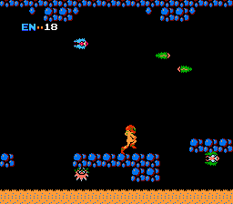 Zebes is filled with a variety of distinctive enemies, many of them vaguely insect in appearance. One of the most common are little spiked creatures that crawl around the perimeters of platforms, which take on multiple forms throughout the game. Also present are shelled creatures that fly back and forth, which are invincible to most attacks; bees that spawn infinitely from pipes; fire breathing dragons; and tiny little buggers that swarm in great numbers. It’s a testament to the game’s visual design that they all remain unique and distinctive given the limited graphical power of the NES.