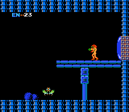 Other than finding and destroying the games’ bosses, so you can enter the final level, you’ll need to find other assorted items in order to beat the game. Most of these are found in the claws of Chozo Statues, mysterious bird-like creatures, whose lore is expanded on in subsequent Metroid games. One of the most important things to find are missiles, which are not only more powerful than your regular weapons, but are required to open red doors. Each missile upgrade increases the amount of ammunition you can store, up to 255. Just as important are bombs, which let you destroy certain blocks on both the floors and on the walls. With proper timing, you can also “bomb jump” by using the explosions from detonated bombs to propel you upwards, something which takes a lot of practice but can be used to bypass certain areas of the game. There are also the high jump boots (expectedly, these make you jump higher) and the Ice Beam, which lets you freeze enemies and use them as temporary platforms to jump to higher areas.