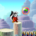 This trip down memory lane takes place in 6 cartoons throughout the ages reimagined as side-scrolling platformers. The first level begins with one of the earliest Mickey cartoons, Steamboat Willie, and proceeds in chronological order through such varied locales and thematic setpieces with The Mad Doctor, Moose Hunters, Lonesome Ghosts, Mickey and the Beanstalk (originally packaged as part of the movie Fun and Fancy Free), and with the latest short at the time The Prince and the Pauper. A secret bonus stage is based on The Band Concert where you climb up spinning boxes in the tornado in order to earn a precious extra continue, though fail and you have to reach the bonus stage again.