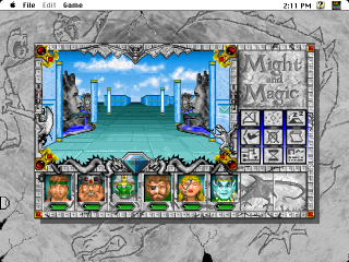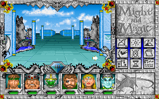 Might and Magic III brought a lot of changes to the series formula. First off, it’s distinctly more narrative focused than the earlier games; it opens with a fully voiced sequence where your party is taunted by a mysterious figure, Sheltem, the barely-fleshed-out villain of the first two games, who is still knocking around. Although it’s still possible to create new characters, the game is also the first in the series to start the player off with a pre-generated party, lead by the noble Paladin Sir Caneghem (named after the head designer of the game). This is also the first game in the series outside of the Macintosh versions of the games to support playing using a mouse.