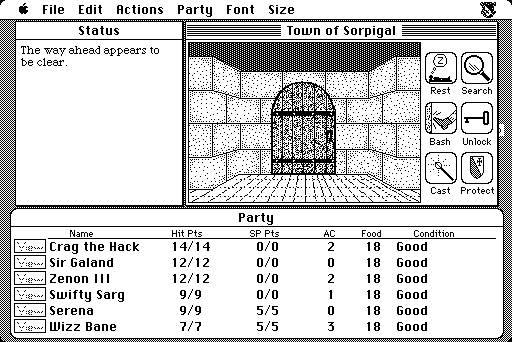Following the simplified CRPG interpretation of the D&D rules popularized by Wizardry, the game does make two notable differences to streamline the gameplay – there are only three alignments (Good, Evil and Neutral), and spells don’t have to be memorized, with casters instead using a pool of magic points for handling spell-casting. Additionally, classes that would have alignment restrictions in Dungeons & Dragons or Wizardry, like the Paladin, have no such restrictions – even Paladins can be evil or neutral.