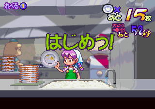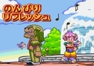 It’s all rather simple – it seems to have been made with children in mind – but there’s an indelible charm thanks to the absolutely stunning 2D artwork. The developer, Westone, was known for their brilliant visuals in the Wonder Boy/Monster World series, particularly Monster World IV for the Mega Drive, one of the most visually splendid titles of the 16-bit era. The developer moved away from this style after transitioning to the next generation, so Milano no Arubaito Collection is a good way to imagine what a 32-bit Wonder Boy game would have looked like. It’s also particularly amusing since Milano and her family (who all also have Italian themed names) seem to be the only humans in Zucchini Town, with the rest of the denizens consisting of assorted oddball anthropomorphic creatures. Even regular animals, like the winged cows and bird/pig hybrids at the ranch, are silly and unusual. There’s no real way to lose either, so it’s relaxing just to sit back and watch Milano live her life at home, giving the game a very laid back vibe, in spite of its capitalistic nature.