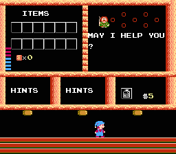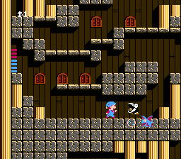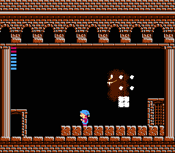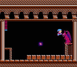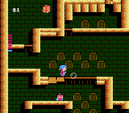 Most of the doors contained action levels, where you need to run, jump, and explore in order to find both the key and the exit door. These stages scroll in all directions, making them more complex than many other NES platformers of the time, giving it the sort of complexity typically found in computer games. Milon attacks with a bubble, which is aimed at an upward trajectory, but can be angled downwards by holding down on the d-pad. Once you enter a level, you can’t leave it until you find the exit, but areas can also be revisited even once they’ve been completed.
