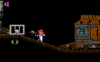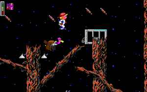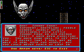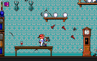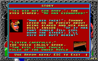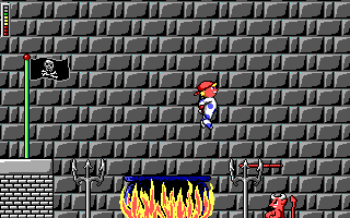Unfortunately, much like other shareware platformers of the era, the gameplay doesn’t really get shaken up too much between the three episodes. The biggest shift in gameplay comes in a stage at the very tail end, where Johnny gets a broom that lets him fly freely for the duration of the level. There’s also a handful of boss fights, including some mid-boss encounter with an evil Johnny clone, but they actually tend to be far easier than the levels themselves. Even the final encounter against Count Chuck is more about actually reaching him.