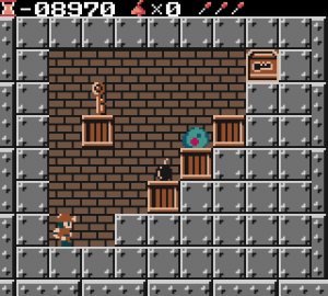 Nada (which is “Dana” with inverted syllables, if you think about it) seized control of the tower, kidnapped the villagers, trained the monsters to attack the intruders and is obviously the final enemy residing in the top floor. Still, just like in the other titles, defeating her is not the end of everything: upon her monster’s defeat you will obtain a silver key, and there’s other nine of them hidden around the tower. Replaying the game and picking them all up unlocks the tower’s hidden Basement, ten tough levels that if completed will bring you to the Phoenix and the true ending. Completing the game once also unlocks the level editor and the ability to exchange these levels through the GBC’s Link Cable.