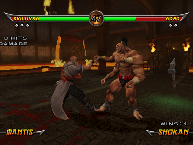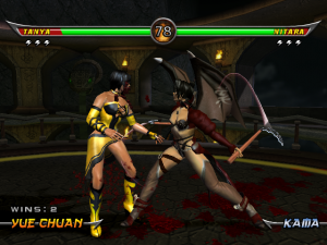 The stages keep the extra interactivity they got in Deception, including multiple tiers, stage hazards, and death traps. Most of the stages are 3D versions of levels from the classic games, including the Bell Tower, Goro’s Lair, and the Subway. There’s also a few new stages, including Sektor’s new warship. There’s also a stage set in Hell, which is basically an infinite series of platforms that you and your opponent can knock each other onto. There’s still no way to set death traps for the winning round only.