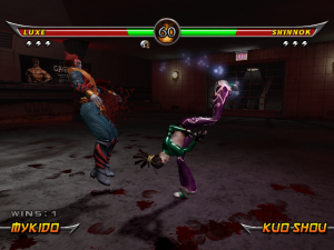 There’s a new mode that lets you create your own character, similar to the one seen in Soul Calibur 3. While it’s not as deep as something you’d see in the WWE games, there’s a decent enough variety of parts and clothing options to make decent looking Sephiroths and Strong Bads. In fact, you’re pretty much expected to make Sephiroth, since one of the hairstyles is ripped straight from him. They even call it ‘Fantasy.’ Subtle, Midway. It helps that you’re not limited to medieval-ages clothing like in Soul Calibur 3, which gives you a lot more freedom to make characters. Unfortunately, most of the character parts are locked until you pay enough koins to actually use them. It’s kind of annoying, but since there’s only one type of koin to keep track of now, it’s not nearly as bad as it could have been. What’s really frustrating, however, is that there can be only one character per player profile, so if you want to make and use more than one, you have to swap profiles on the character select screen and remember which profile belongs to whom.