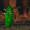 Just like Deception had a minigame that ripped off a much better game, Armageddon has Motor Kombat. It’s basically the Mario Kart to Puzzle Kombat‘s Puzzle Fighter. You can chose from a bunch of superdeformed Mortal Kombatcharacters, who each have a personalized vehicle to race in. Johnny Cage gets a sports car, Jax has a miniature tank, and Bo Rai Cho races around in a beer keg. It’s a pretty sub-standard racing game, with only a few tracks to race on. There’s also hazards scattered all over the track, like a gong you can drive through to make iciciles fall onto the other racers. Unlike Mario Kart, things tend to end rather bloodily for anybody who gets hit with a hazard, but anybody who gets killed will pop back onto the track just a few seconds later.