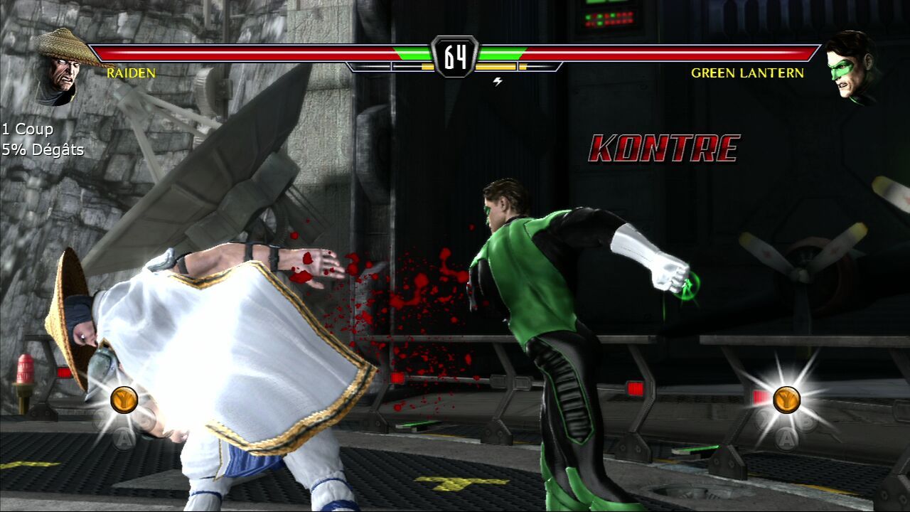 And then we get to the Fatalities, which depending on just how much you love the gore, may or may not be a step back from the generic Fatalities of Armageddon. The game is rated T, which means that while there’s still blood, it’s only tiny spurts that don’t even hit the ground. The Mortal Kombat characters and the DC villians can still do Fatalities, and these vary in quality. Liu Kang gets a callback to Mortal Kombat 3, where he drops a Mortal Kombat 1 cabinet onto his defeated foe. Kano, however, has a Fatality where he leaps up into the air and stomps onto the opponent’s chest. Looks uncomfortable, sure, but if you look closely, you’ll notice the opponent is still breathing. That’s right, it’s a Fatality that isn’t actually fatal. Nintendo would be so proud.