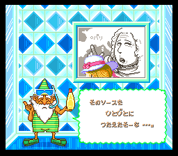 Unfortunately, generous readings like this don’t hold up to further scrutiny. Despite its pretensions at meaninglessness, the game is built to serve a discrete purpose: to promote awareness of Ajinomoto mayonnaise. Even putting aside any knowledge tied to the game’s distribution (IE that it was given away only to loyal Ajinomoto customers), Motoko-Chan itself is all too eager to make that knowledge relevant within the game itself. What few distinct characters there are use any opportunity they can to advertise the product, and the overarching plot at least tries to relate itself to this purpose by centering your adventures around gathering the missing ingredients for three mayo-based recipes. In doing so, Motoko-Chan forces us to interpret it not as a surreal adventure, but through this readymade lens, and it’s along these lines that the game fails. Far from being endearing, the numerous gags only distract from the game’s purpose while offering nothing in return. It doesn’t help that the game makes only the barest effort to relate any of them back to cooking.