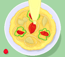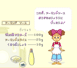 And mayo. Motoko-Chan will slather anything in mayo. In fact, it loses any semblance of self-control the moment mayo enters the picture (which it inevitably will). Fruit salad probably wouldn’t benefit from more mayo, and it’s hard to take the game seriously when it claims that the sauce is a key ingredient in almond sauce. But it doesn’t care. So long as it can relate these dishes to mayonnaise somehow, it’s going to the stuff up. The recipes reach their peak absurdity when the game instructs you to add mayonnaise (an egg-based product) to your omelette (another egg-based product). So in addition to being potentially unappetizing, Motoko-Chan‘s dishes also run the risk of being potentially unhealthy.