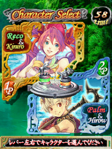 Based on the scoring system of Maniac, Arrange mode allows players to choose from the normal Original, Maniac, or Ultra modes, as well as their starting offensive character. In one player only mode, players control both Reco and Palm, armed with a combination of their normal and abnormal shot types. The other character plays a defensive role, forming a barrier around the player. If the player is using the regular shot, enemy bullets within that barrier will slow down, and pressing laser will cause any slowed bullets to be reflected back, leaving a trail of small airborne gems. This leads into the main mechanic of this mode, the two four-digit numbers on the bottom left and right side of the screen. These counters are attached to each character depending on the starting offensive choice. Collecting gems as the offensive character will cause their counter to increase. On the defensive side, players will gradually increase their counter by slowing bullets. If a bullet hits the defensive character or they reflect bullets, their counter will decrease, and should the defensive counter be zero, players cannot cause any bullets to slow down. Players can counter this by freely switching the offensive and defensive characters (and their positions) with the push of a button. The goal of this constant offensive and defensive switching is to get both character’s counters to their max of 9999, whereby pressing both shot and laser they enter into a “fever” mode. Fever mode is a timed mode ending when both counters tick down to zero. During that time, the player becomes much more powerful, and all gems gain a blue-aura, and greatly increase the players score. Arrange mode also has an auto-bomb feature, triggered by having the offensive character getting hit will cause them to throw one bomb. Because of this, the player essentially starts out with 18 lives, with each bomb powerup acting as yet another life. Due to the auto-bomb mechanic, the bullet reflecting system, and playing as both characters at once, Arrange mode is noticeably easier than the normal version of the game, but still a fun mode overall.