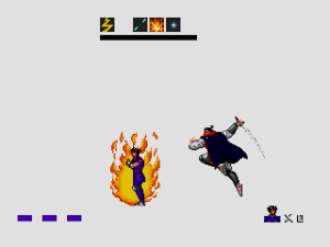 Many places on the Internet refer to Mystic Defender as the sequel to SpellCaster. Technically, this isn’t exactly true. It was actually intended as a direct adaptation of the second Kujaku Ou OVA, Kujaku Ou 2: Geneijo, eventually released in North America as Peacock King Spirit Warrior: Castle of Illusion. In Japan, the game had the same title as the OVA, and its back-cover and manual featured stills from the movie. Thus the numeral referenced the OVA, not the Master System / Mark III’s Kujaku Ou, whose story was very loosely based on the manga series and wasn’t really compatible with the OVA series’ continuity.