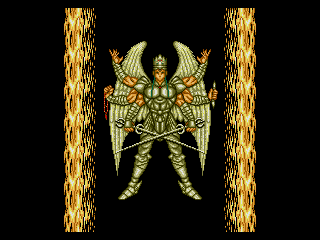 Mystic Defender is also known for a minor episode of censorship. In the Japanese version, Asura is fully naked when you rescue her, as she was in the OVA’s ending (and even on the cover of every other Kujaku Ou game). The North American release kept the original sprite at first, but later prints covered her up with what appears to be a pink dress or nightgown. This was apparently still not enough for the South Korean release, which took the trouble to dress her up in what appears to be a traditional Korean hanbok. It did, however, retain the angel summon, and uses modified versions of the character portraits in the intro. Bizarrely, the Japanese version is actually contained in the North American & European cartridges and can be accessed by inserting them in a Japanese Mega Drive.
